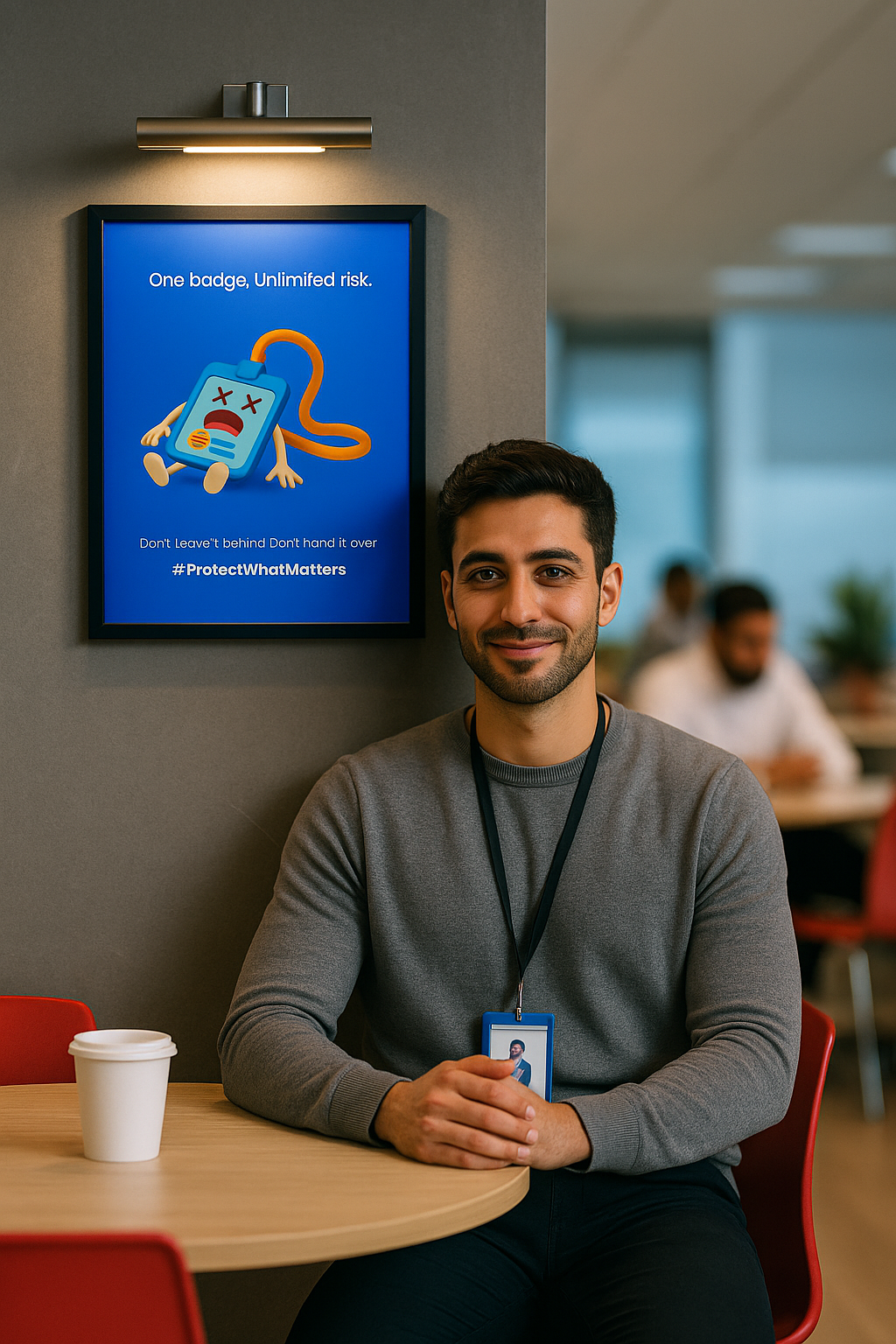 Enhance cybersecurity awareness with visual reminders in high-traffic areas corridors, lobbies, elevators, meeting rooms, and cafeterias.